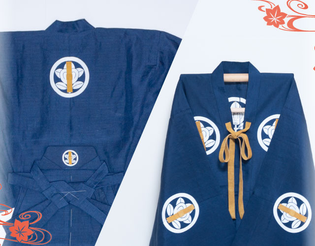 素襖 本麻 紋染抜き 本革飾紐付