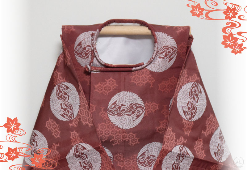 狩衣 臙脂地雲取亀甲に白雲鶴紋